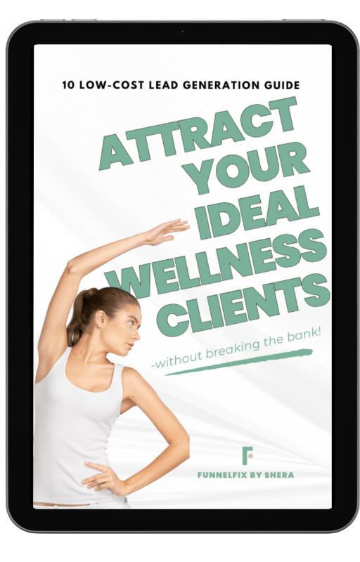 Unlock the secrets to standing out in a crowded market and attracting your ideal clients without overwhelming costs. Download our exclusive guide: "10 Low-Cost Lead Generation Guide On How To Attract Your Ideal Wellness Clients Without Breaking The Bank!"